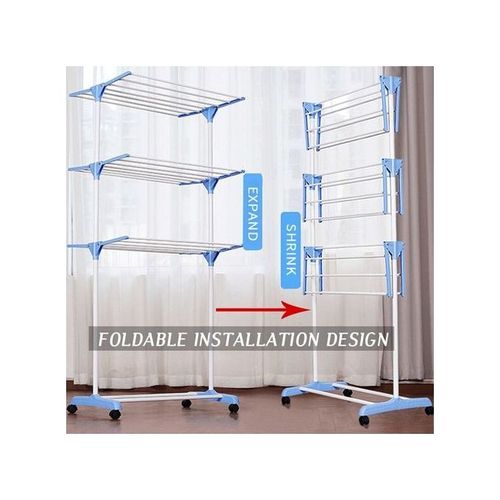 قوية ومتينة: شماعة التجفيف الخاصة بنا مصنوعة من مادة معدنية متينة وستدوم لسنوات. رف تجفيف الملابس الخاص بنا مصنوع من الفولاذ المقاوم للصدأ عالي الجودة، قوي ومتين بما يكفي للاستخدام اليومي.